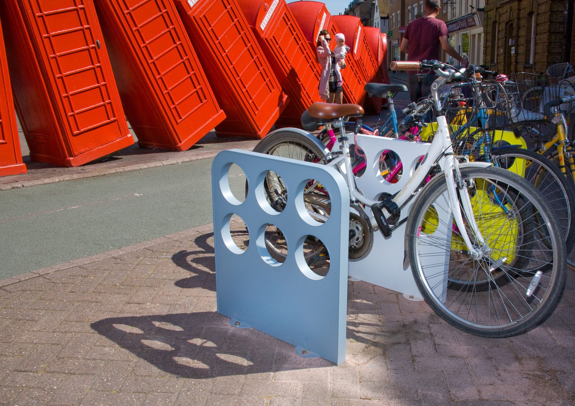 Edition: To accompany this exhibition Fabien Cappello has produced a Stanley Picker Gallery Edition in the form of a key ring, based on his bike stand design which will be seen in the Gallery and on the streets around Kingston town centre. This limited edition key ring of 100 is made in steel with a dipped plastic coating in blue, yellow or grey, and is available for purchase directly from the Gallery for £15.