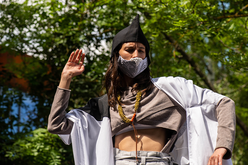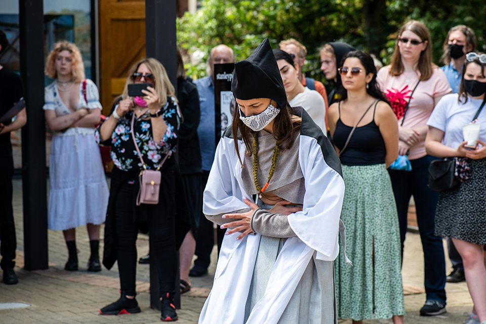 The performance draws on the online collaboration that began last summer during #TheOriginKingston and has been developed over later weeks through rehearsals in the exhibition space and around the island the Stanley Picker Gallery sits on in the Hogsmill River, responding to these two sites.
