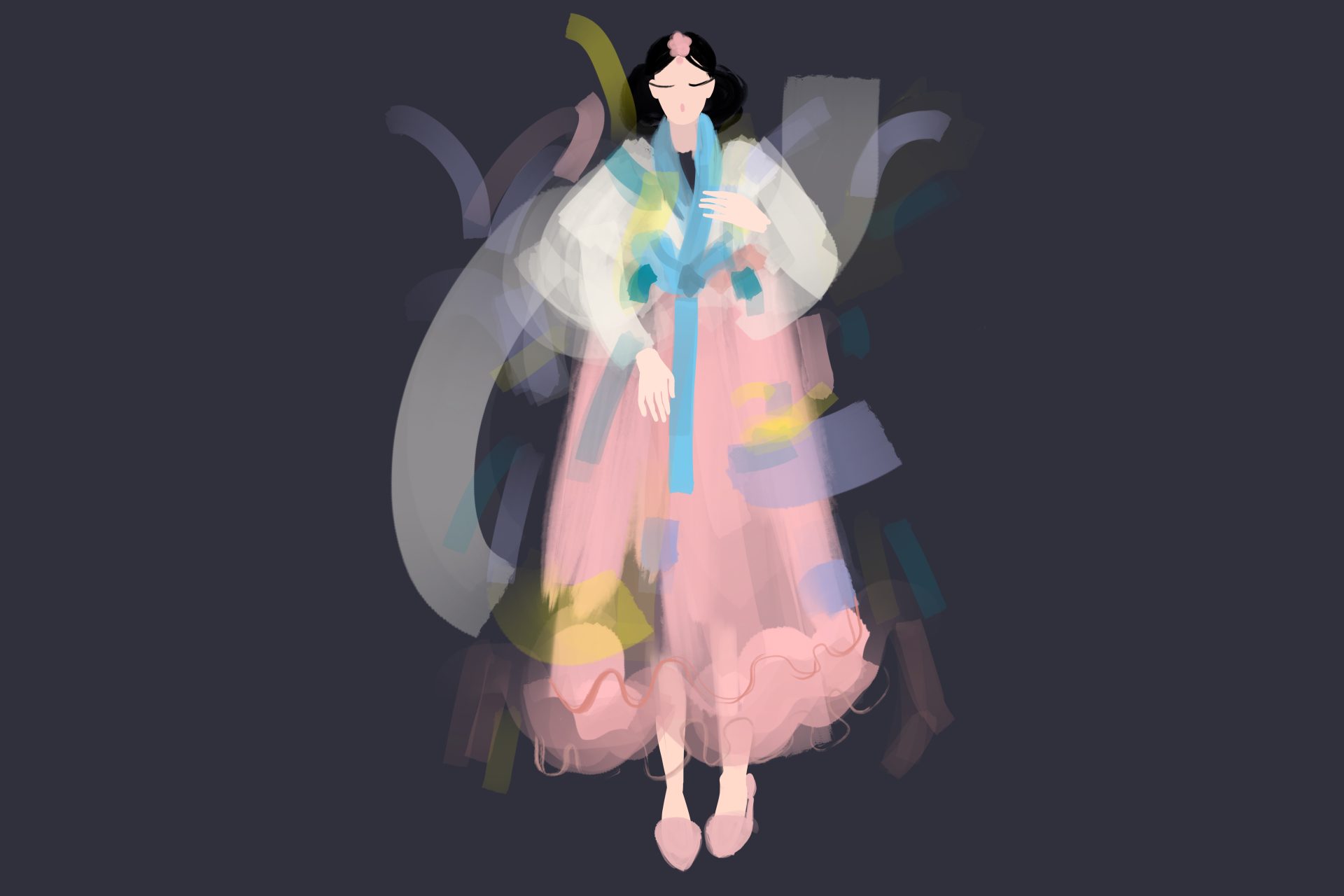 A Hanbok (Han: Korean, Bok: Dress) is a traditional Korean dress for semi-formal or formal attire during traditional occasions such as festivals, celebrations, and ceremonies. It is characterised by vibrant colors and simple lines without pockets. Although the term literally means “Korean clothing”, hanbok usually refers specifically to clothing of the Joseon period. Korea had a dual clothing tradition in which rulers and aristocrats adopted different kinds of mixed foreign-influenced indigenous styles while commoners preserved a distinct style of indigenous clothing, today known as hanbok.