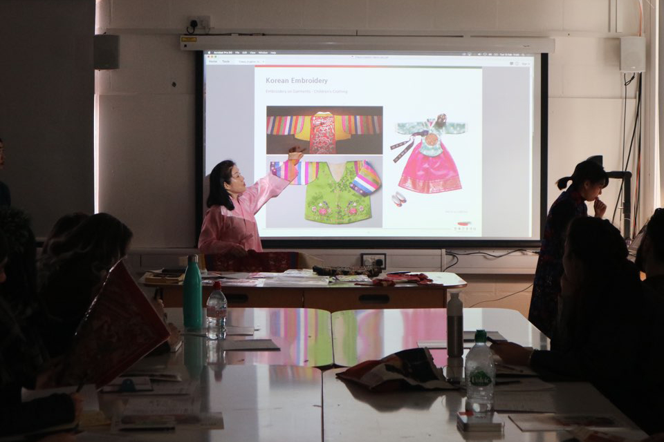 “The Hanbok Advancement Centre delivered their Global Fashion School Lecture programme at KSA with the purpose of providing information about the value of hanbok for students overseas. Our BA Fashion students, including those on our exchange programme, collaborated for the first time with BA Hand Embroidery for Fashion, Interiors, Textile Art students from RSN on a Hanbok inspired project during Kingston University Enrichment Week in February.