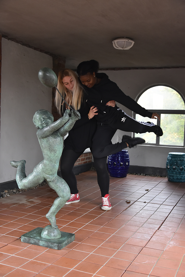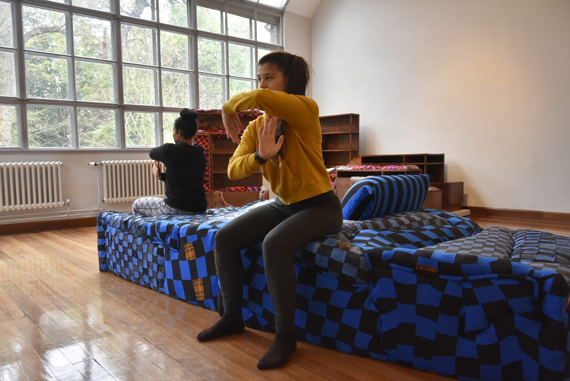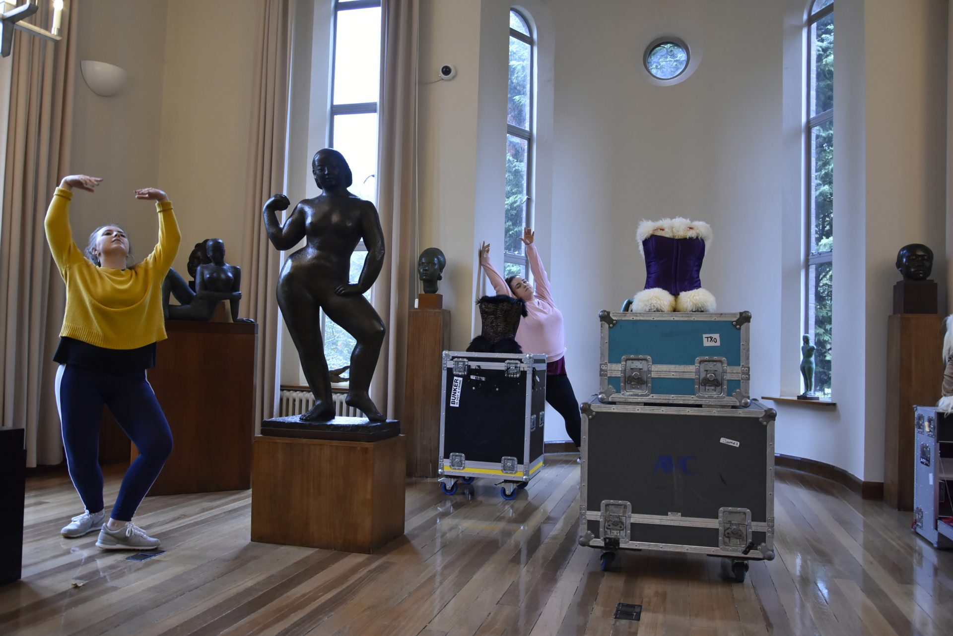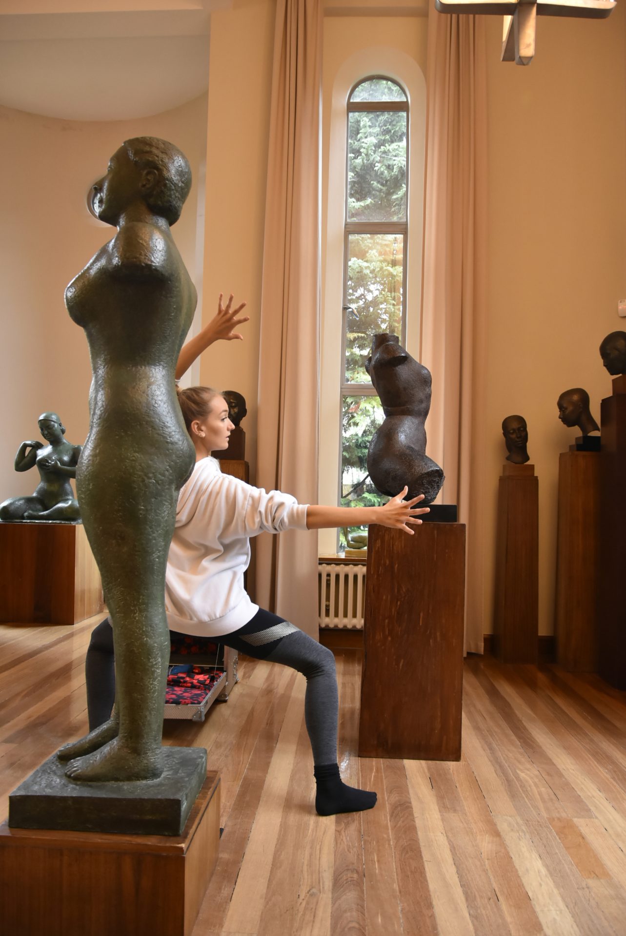 In the first of their workshops, Level 5 (second year) BA Dance students undertook a guided museum and exhibition tour, in which they handled Gordine’s bronze sculptures of dancers and attempted to recreate some her most ‘imaginative’ forms. They also made observational drawings of favourite ‘floating heads’, and generated free writing to capture first impressions.