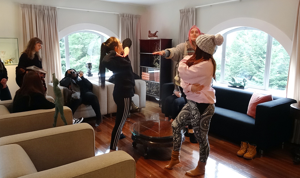 Dancers, under the tutelage of course lecturer Beatrice Jarvis, were then challenged to team up in small groups to create 2-3 minute site-specific sequences inspired by their experiences and new-found knowledge of the story of the house, and life and practices of Gordine and Hare. Like history, key movements and moments became intertwined.