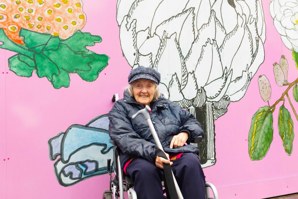 The public hoardings commission changes how the institution communicates itself, and how others see and understand it. Jenny’s work offers an invitation to the other residents, and to the wider community. Her work challenges common perceptions of older citizens, and visibly and publicly asserts the value of our residents as creative and productive people, living interesting lives. Most importantly, Jenny is an inspiration on how to live – testament to the value of creativity, curiosity, close looking, and care.