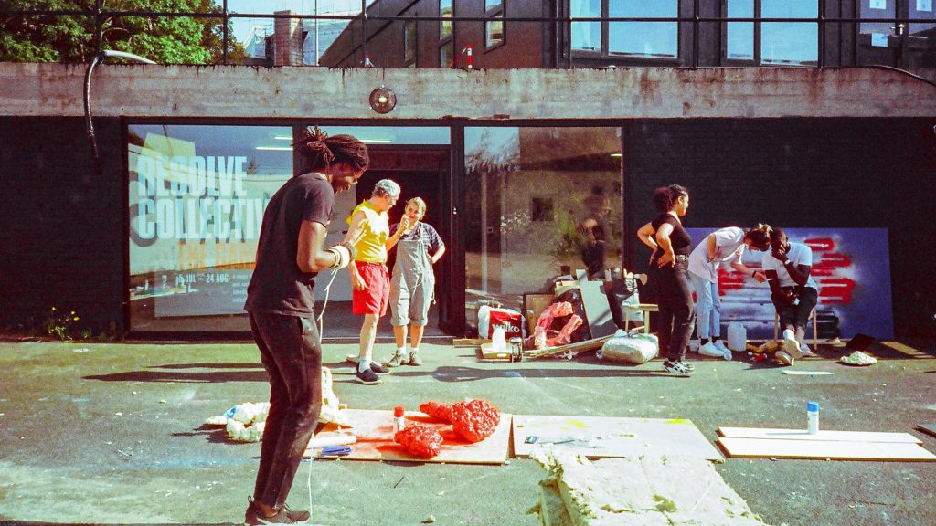 At RESOLVE Collective, our here still speaks to this illusion. From the deindustrialised landscapes of Northern England to the apartheid geographies of illegal Israeli occupation in the West Bank, Palestine, we work in trans-local mutuality with a web of creative practices and organisations who are building community-facing infrastructure in order to subvert, resist, and reimagine a world order that ascribes us to its margins. Though ours is a creative practice that emerged from South London in 2016, it is one that has since put us in constellatory arrangement with sites across the world, learning through our labour and collaboration. These sites – community centre buildings in Liverpool, rhizome routes through the Azorean island of São Miguel, inter-peripheral exchanges between the Parisian suburbs of Montreuil and Corbeil-Essonnes, the Black and Brown Elbinseln of Hamburg, the estuarine cityscapes of Douala – become, momentarily or cyclically, our co-laboratories. Here, learning is a reciprocal act that indebts us to communities and their places.