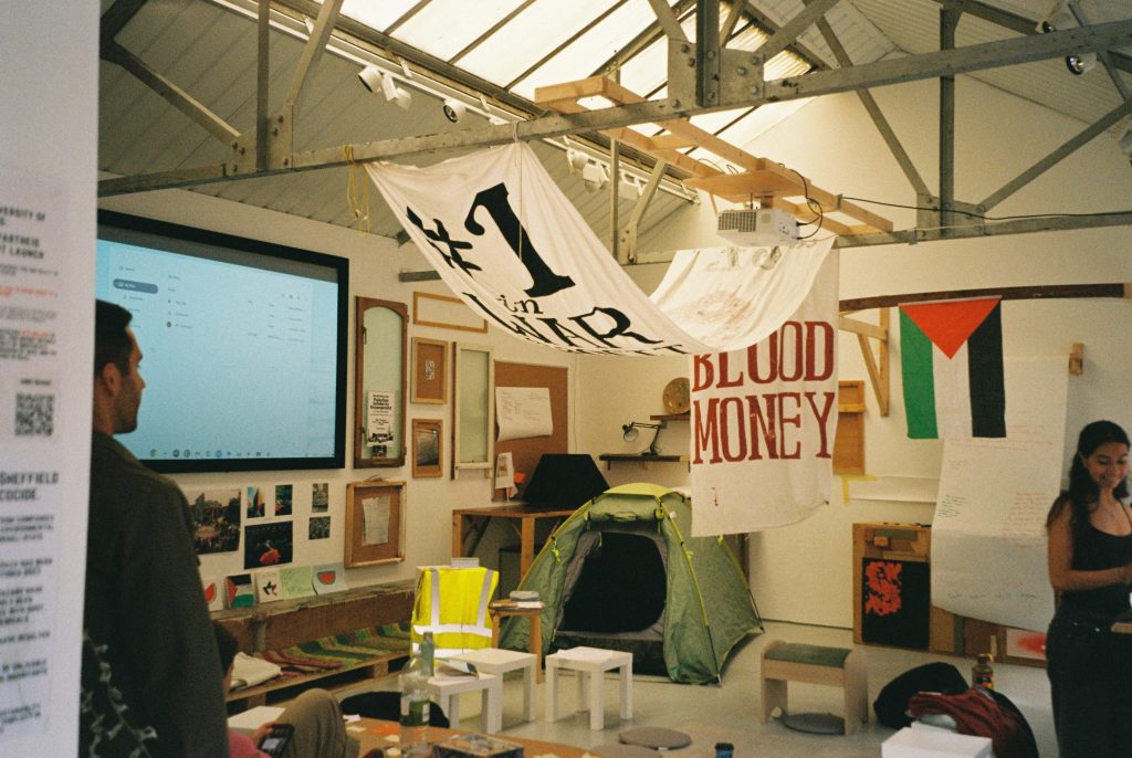 The project had a number of public-facing aspects in addition to the residencies, such as workshops, showcases, and artist presentations. But the paragon of this was the open programming for community organisations across the city, such as Calabash! and the Sheffield Universities Palestine Student Encampments, who were invited to use the space throughout the week. Here, we sought to unravel the idea of the residency as an exclusionary mechanism for individual artistic development and instead play with its porous, communal potential.