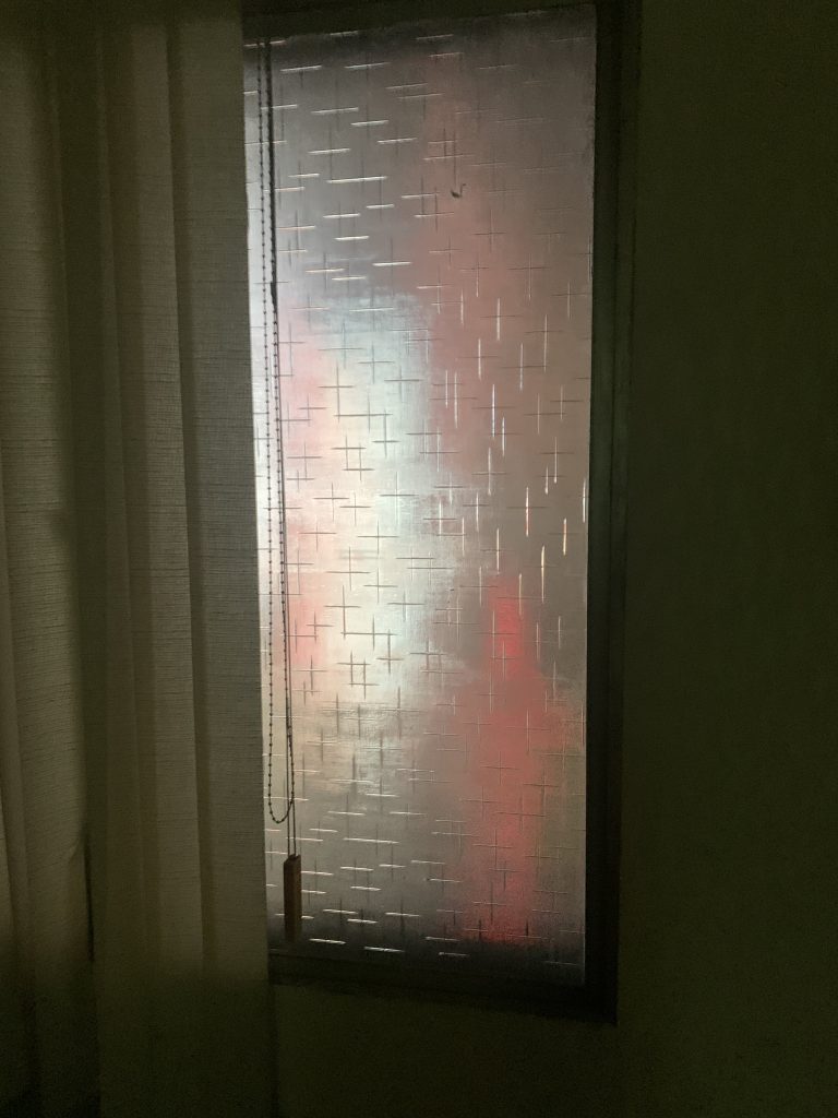 My gaze anxiously wandered, suspended within the pink mosquito net. The fluorescent blue light emanating from the mosquito zapper in the corner forced shadows to dance with wavering certainty. In between the occasional passing motorcycle, I listened for movements in the air, eyeing the net’s closure, hoping I didn’t leave a gap. As I lay there, on a bed in my father’s childhood home in central Taipei, in the middle of the emptied second floor from which my grandfather’s business imported metals from Japan for electroplating—not yet adjusted to the local time and the multiple temporalities this home inhabits—I was feeling that particular exhaustion that leaves one’s body pulsating. I turned to my side, hoping to shake it off. Shop signs flashed through patterned glass, illuminating the last remaining desk of the emptied-out office. I remembered how I used to watch my grandmother walk around this room in circles, swinging her arms, massaging her knees, pausing at a half-open window to watch the world leave her behind.
