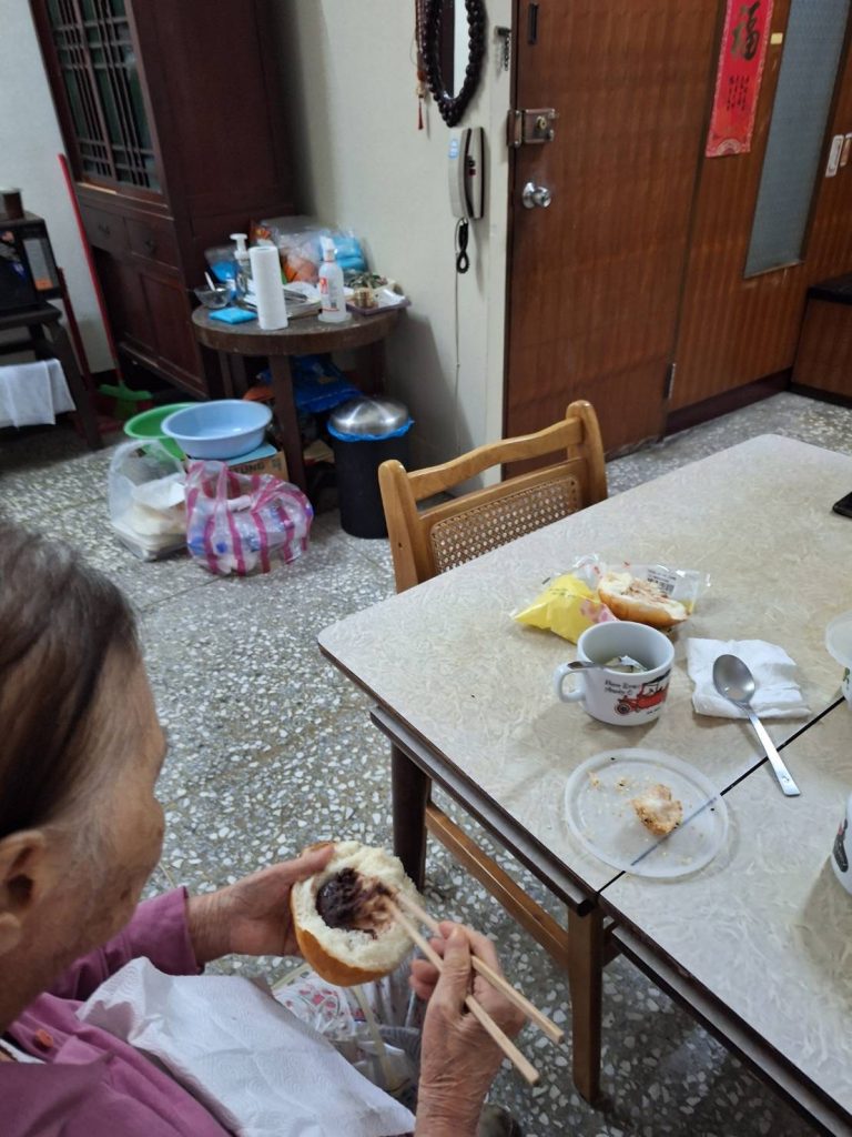 I don’t know how long I lay there awake, or maybe I had been drifting in and out of restless sleep, but I began to notice increasing noise from the street below. I tried to open my eyes, but they were glued shut by some dried secretion. The doctor said my red-eye sickness might have to do with the increasing pollution migrating across the Taiwan Strait. Matter knows no borders. I heard sounds of plastic slippers slapping against the dusty terrazzo floor above. In this house everything always felt dusty, sedimented with the kind of residue that doesn’t wash out. My grandmother’s migrant, live-in care workers were already at work, day after day tirelessly cleaning the worn-out bathroom floors, doing the laundry, preparing breakfast in an inhospitable kitchen, and helping my grandmother up from her bed, half shouting so she might hear through her failing ears. They assisted her with her regular morning routine: walking back and forth four times across the living room, sitting at the kitchen table to play a game of kick, and then a game of catch with an inflated ball, and feeding her breakfast, begging her to finish the last bites while she refused and huffed and turned her head this way and that, pouting her lips like a child.