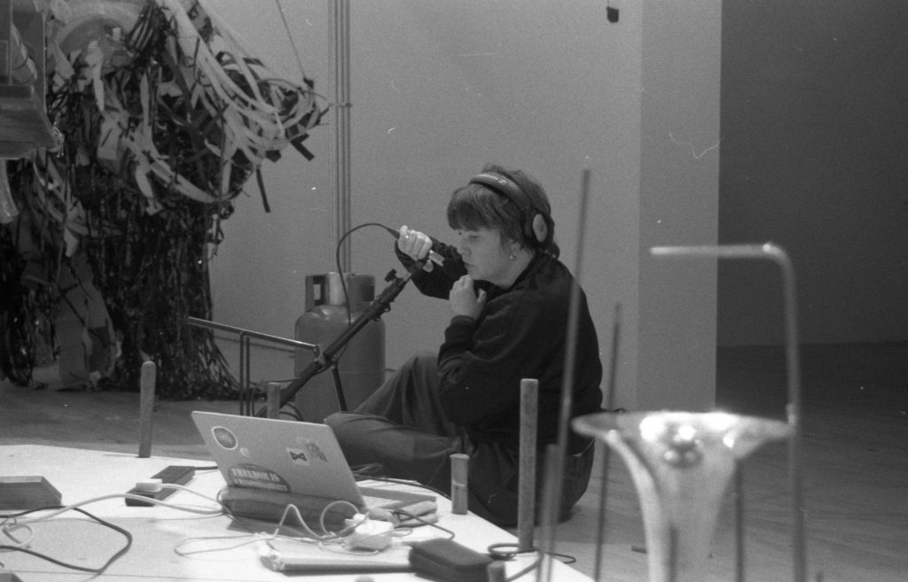 On Friday we will have a chance to hear from the sound artists in the exhibition as the artists are joined by curator Andrea Zarza Canova to discuss their works. Following this we will hear a sonic correspondence produced by Rebecca Kressley in response to Nnena Kalu’s working practice as part of Super Trouper. We will listen to Abbas Zahedi’s experiments with art making in collaboration with students from Kingston School of Art and experience Sophie Huckfield as Lady Ludd with her newly formed group Alternative Uses who are students from the foundation programme at Kingston School of Art.