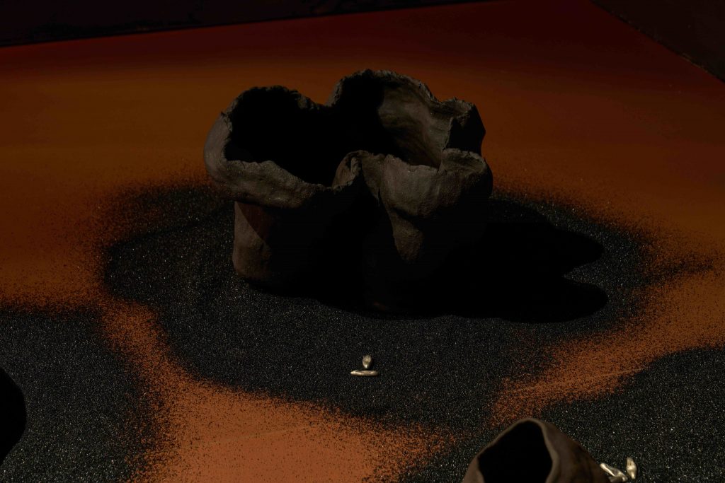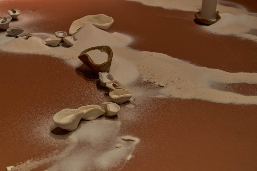 The exhibition Through an Embodied Practice of Stillness is a new series of sculptural installations, soundscapes and film work by Stanley Picker Fellow Davinia-Ann Robinson, which explores encounters with stillness (Sharpe, 2023:241) through the body’s engagement with somatic practices and raw and reclaimed clay.