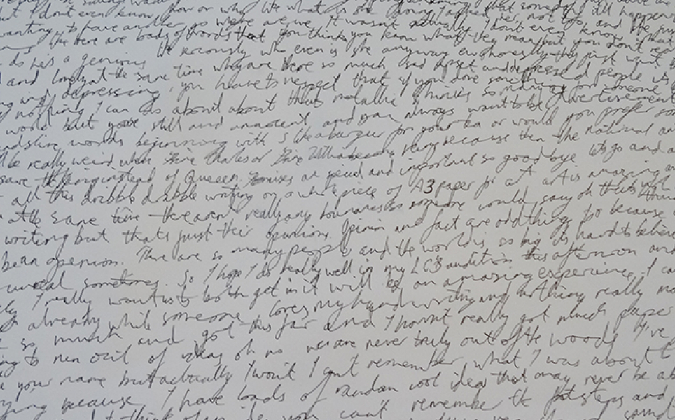 Throughout the programme, with workshops tailored to meet the interests and requirements of individual students, participants learnt about Fellows’ practice, influences and creative processes – including research methods that do not include googling! Scholars’ shared their individual interpretations of artworks examined, ideas and personal preoccupations through free-writing, zine-making, drawing and discussion. Each scholar was charged with pursuing an area or issue of particular interest to them and reflecting on what they had learnt, create a new piece of work. What is Now, which has been curated by the 6th form scholars showcases a selection of the outcomes and ‘zines as evidence of the research process.