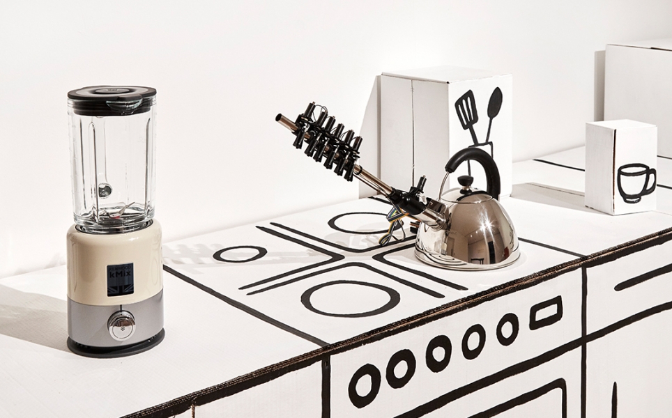 ‘When you do your laundry, why must you listen to a dreadful pounding noise that may distract you from your tasks or simply take you away from the present?’, states Suzuki. ‘Could a washing machine make a beautiful ambient sound instead? Our lives may be made easier with technology taking care of most of our chores, but perhaps, with a little imagination, we could redefine how sound impacts on our mental wellbeing’. Furniture Music comprises two main bodies of work: an immersive installation, titled Sound of the Waves (2018); and a series of appliances and furniture pieces conceived for the kitchen/living areas of the home which include, amongst others, a Singing Washing Machine (2018), developed in conversation with composer Matthew Herbert, and a Musical Kettle (2017).